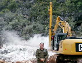 重慶九龍坡-斗山挖機改切削鉆機(90孔6米)-1分鐘2-3米