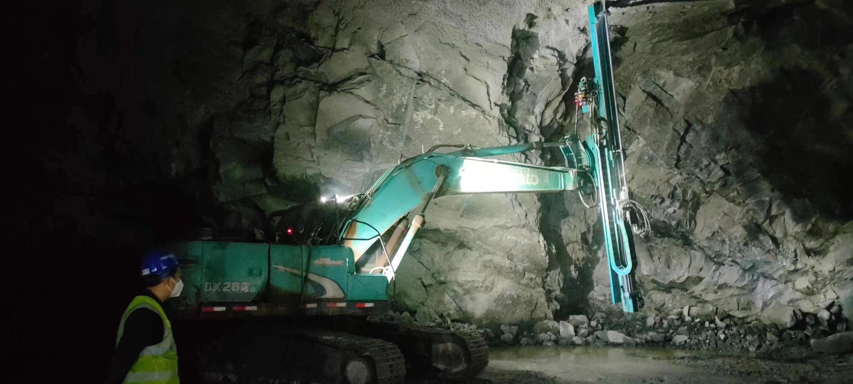 四川沐川-斗山挖機改全液壓鑿巖機(60-90孔5米)