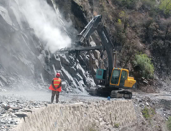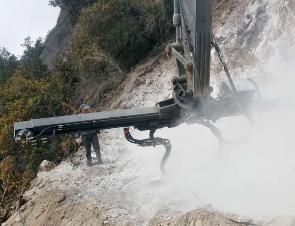 億山ES300挖改全液壓鑿巖機,廣泛適用于花崗巖、石灰石、大理石、火山石、青石、玄武巖等硬度較高的堅巖石的各種爆破前鉆孔作業(硬度F大于6級);可以借助挖機的操作靈活性用于錨桿鉆孔;也遠遠低于一體式鑿巖鉆機的采購價格。具操作簡易,設計人性化,感觀直接,實現挖掘機一機多用等特性。