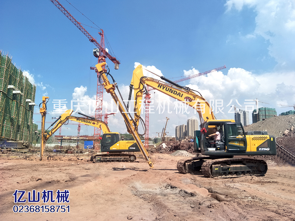 3、作業半徑擴大化 。因為挖掘機小臂不拆,它的作業半徑可以延長作業半徑2-3米,且仰角打孔、水平打孔、豎直打孔都可以實現。