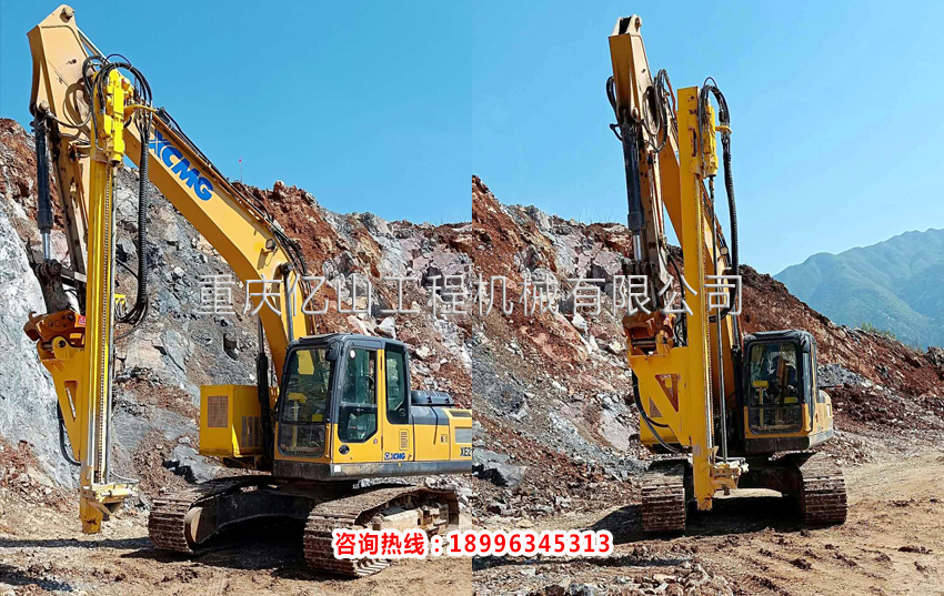 挖機改鉆機,新興施工模式,可白天鉆孔鑿巖,晚上破碎裝運,讓您的挖機24小時無休為您賺錢!咨詢電話:18996345313(秦女士)
