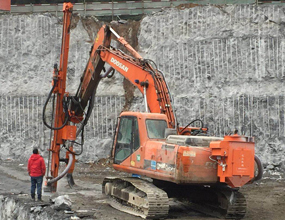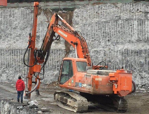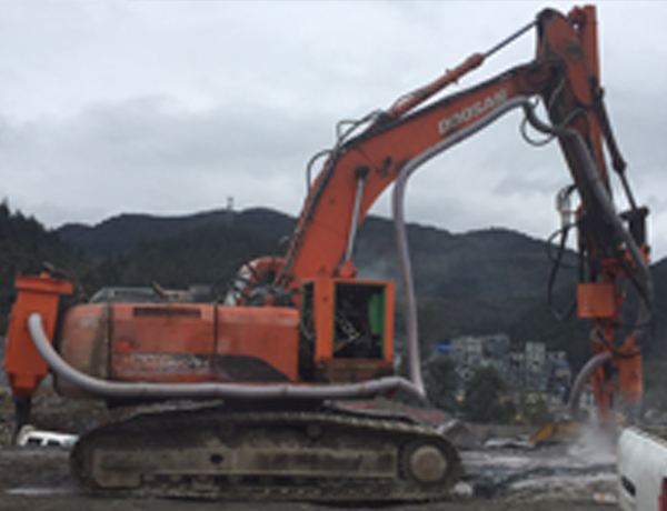 斗山225挖機(jī)改裝沖擊鉆(300型),;3.66米+1.525米鉆桿接桿,90孔;3.5立方空壓機(jī);帶吸塵