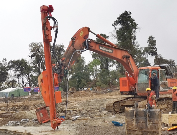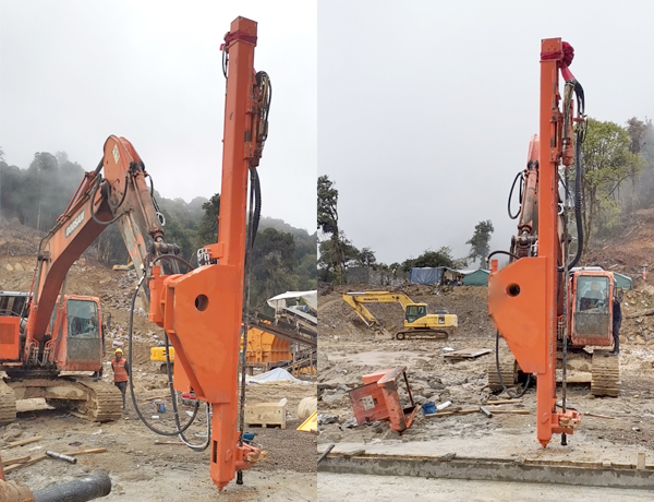 2、前后左右自由伸展,當挖掘機在工地不平坦的情況下, 挖機手可根據位置不同調整鉆桿角度,保持90°垂直鉆孔。