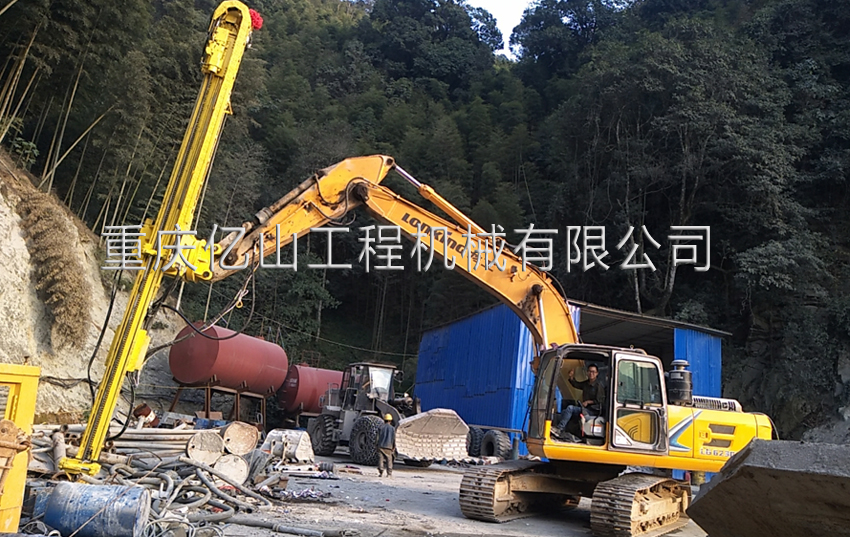 1、安裝拆卸方便。挖掘機小臂不用拆卸,不影響挖掘機自身功能,直接類似掛破碎錘一樣,管路系統都可以共用,真正實現一機五用并互換:挖土、破碎錘、切削鉆、鑿巖機、潛孔鉆。拆卸時間和換斗時差不多,約10-20分鐘。