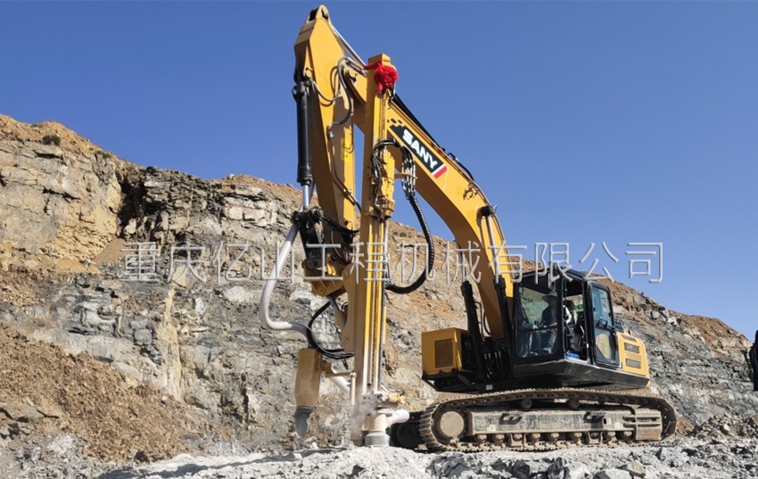 億山ES300挖改全液壓鑿巖機,廣泛適用于花崗巖、石灰石、大理石、火山石、青石、玄武巖等硬度較高的堅巖石的各種爆破前鉆孔作業(yè)(硬度F大于6級);可以借助挖機的操作靈活性用于錨桿鉆孔;也遠遠低于一體式鑿巖鉆機的采購價格。具操作簡易,設計人性化,感觀直接,實現(xiàn)挖掘機一機多用等特性。