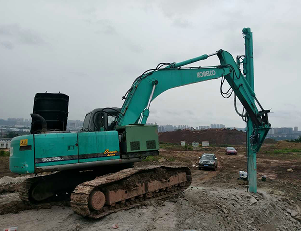 2、前后左右自由伸展,當挖掘機在工地不平坦的情況下, 挖機手可根據位置不同調整鉆桿角度,保持90°垂直鉆孔。