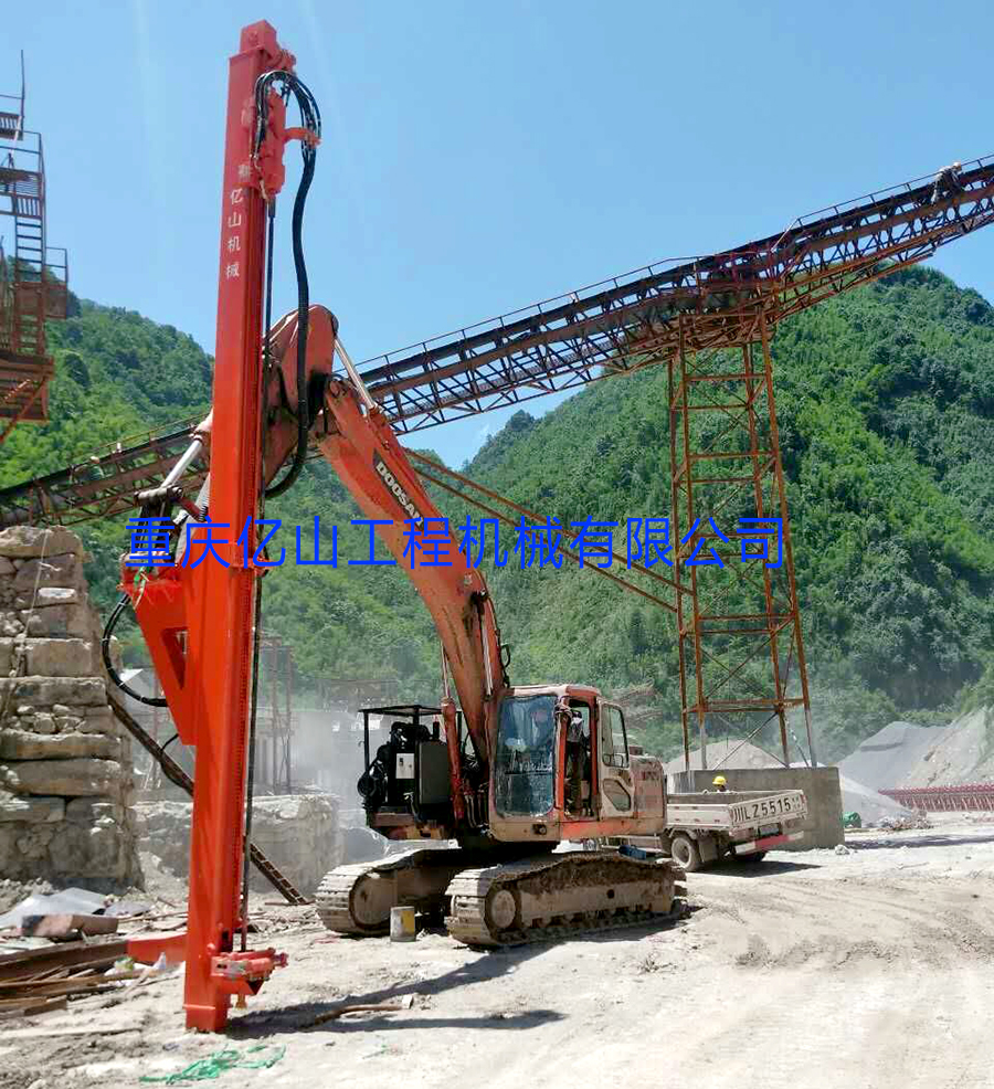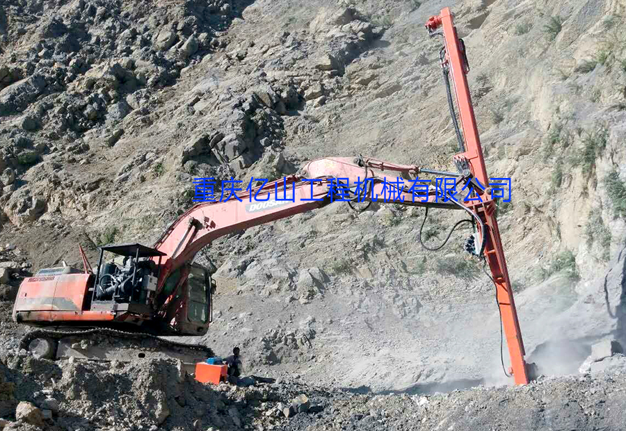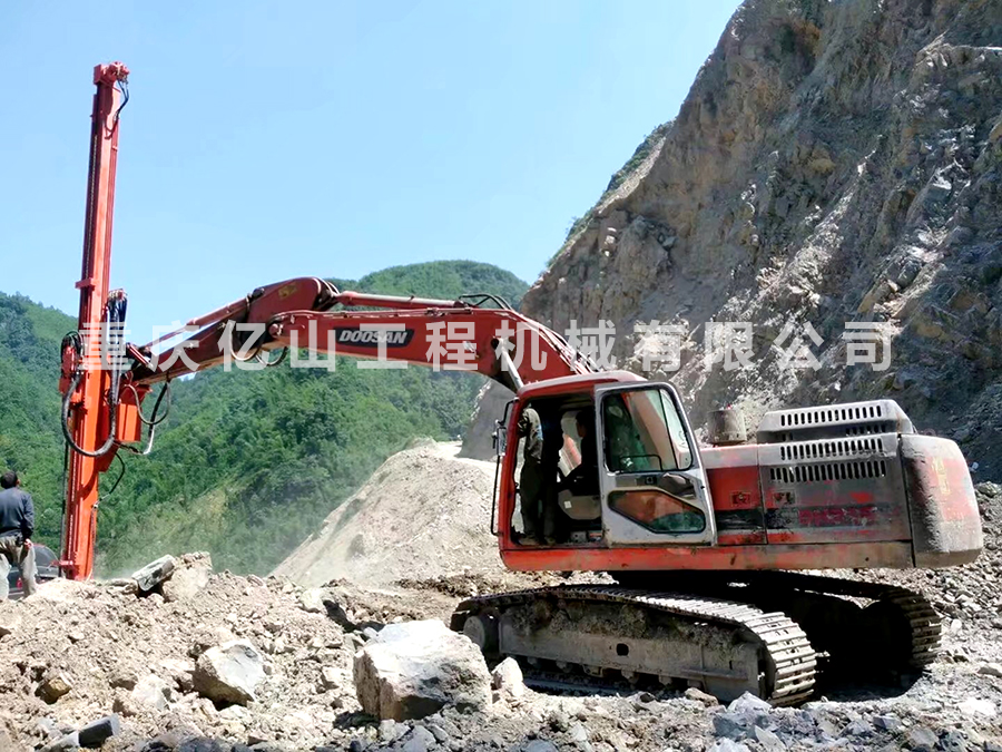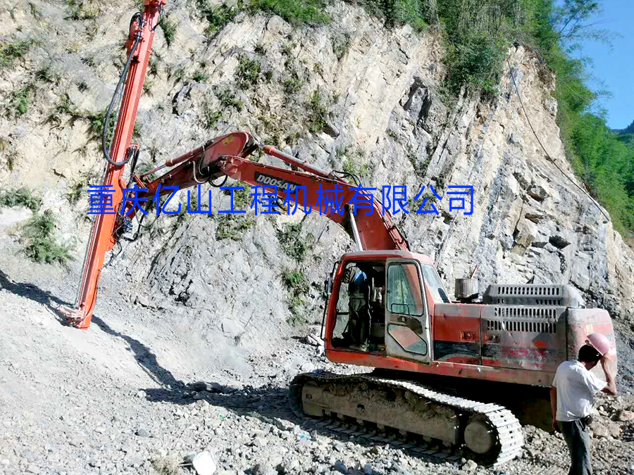 四川沐川-斗山挖機改全液壓鑿巖機(60-90孔5米)工地現場