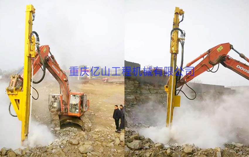 挖機改鉆機為您開啟了新的施工方法。挖斗+破碎錘+切削鉆機+鑿巖鉆機+潛孔鉆機,一機多用,為您降低成本。無論您是從事采石業、采礦業、土建工程、鋼鐵工業、隧道工程或路橋工程,在許多傳統方法失效或成本高的地方,您都可以借助這靈活、耐用、噪音小且震動低的特種機器。
