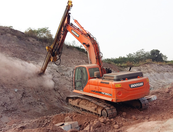 挖機改鉆機為您開啟了新的施工方法。挖斗+破碎錘+切削鉆機+鑿巖鉆機+潛孔鉆機,一機多用,為您降低成本。無論您是從事采石業、采礦業、土建工程、鋼鐵工業、隧道工程或路橋工程,在許多傳統方法失效或成本高的地方,您都可以借助這靈活、耐用、噪音小且震動低的特種機器。